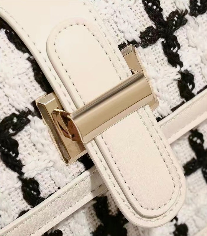 Checkered Flap - White is the epitome of timeless style and modern convenience. With its striking black and white checkered design, this bag adds a bold yet sophisticated touch to any outfit. Whether you're heading to a business meeting or a casual day out, this bag is the perfect accessory to complete your look.