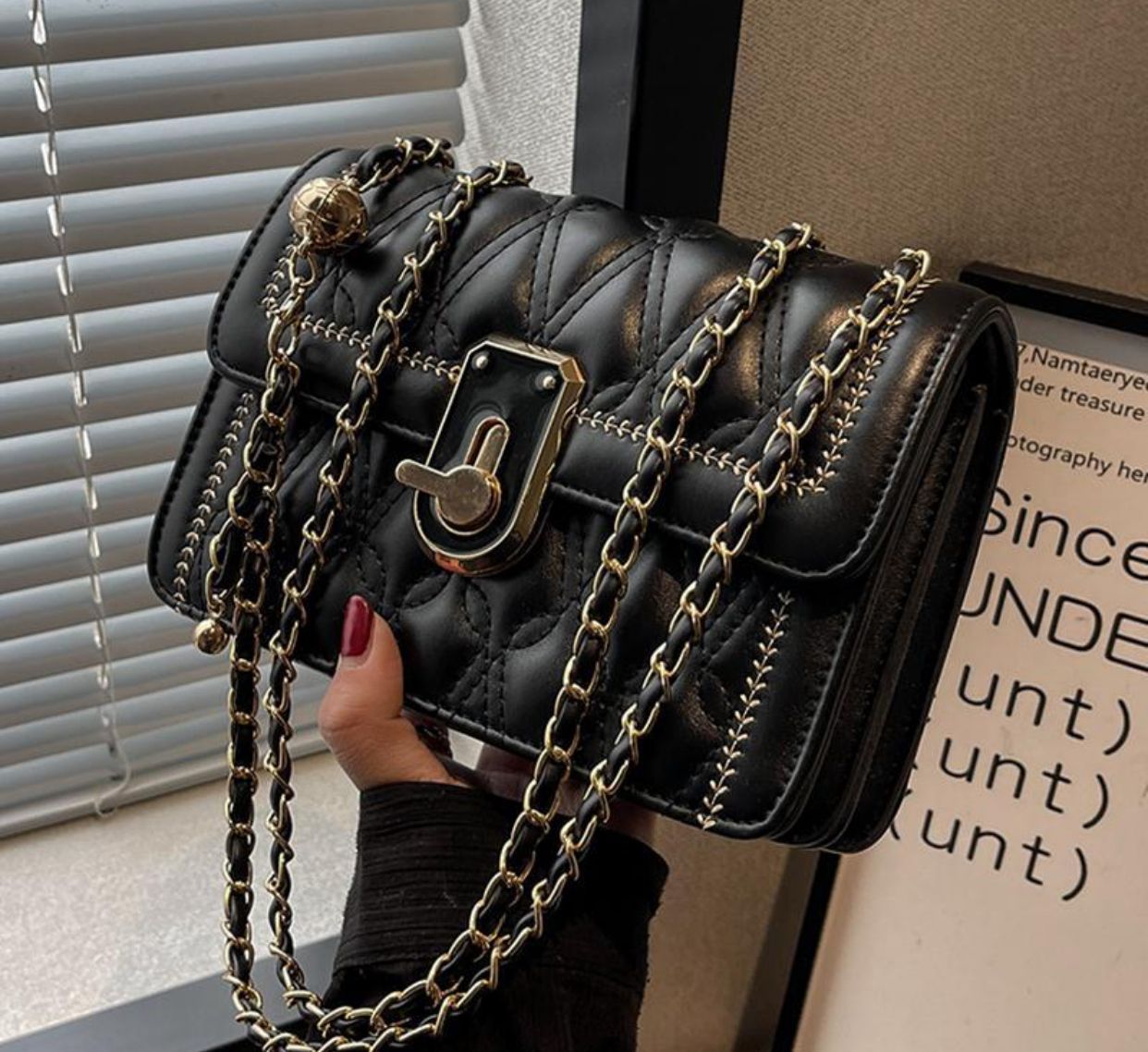 -Strap Size 1st:  Chain + Pu Leather Belt 70 CM  – Ideal for use as a  Shoulder & handbag.