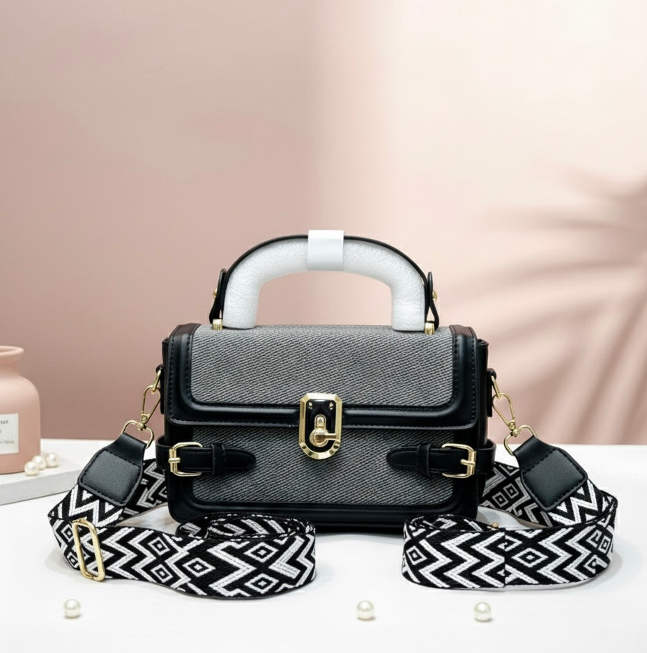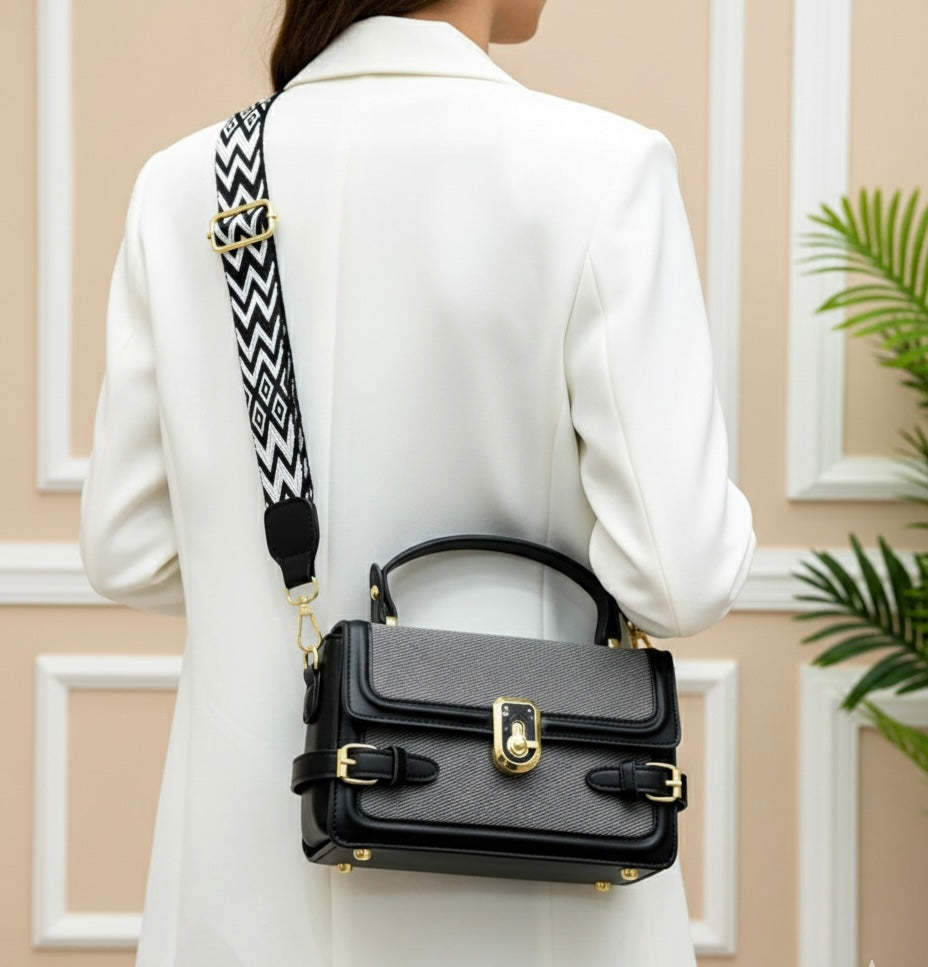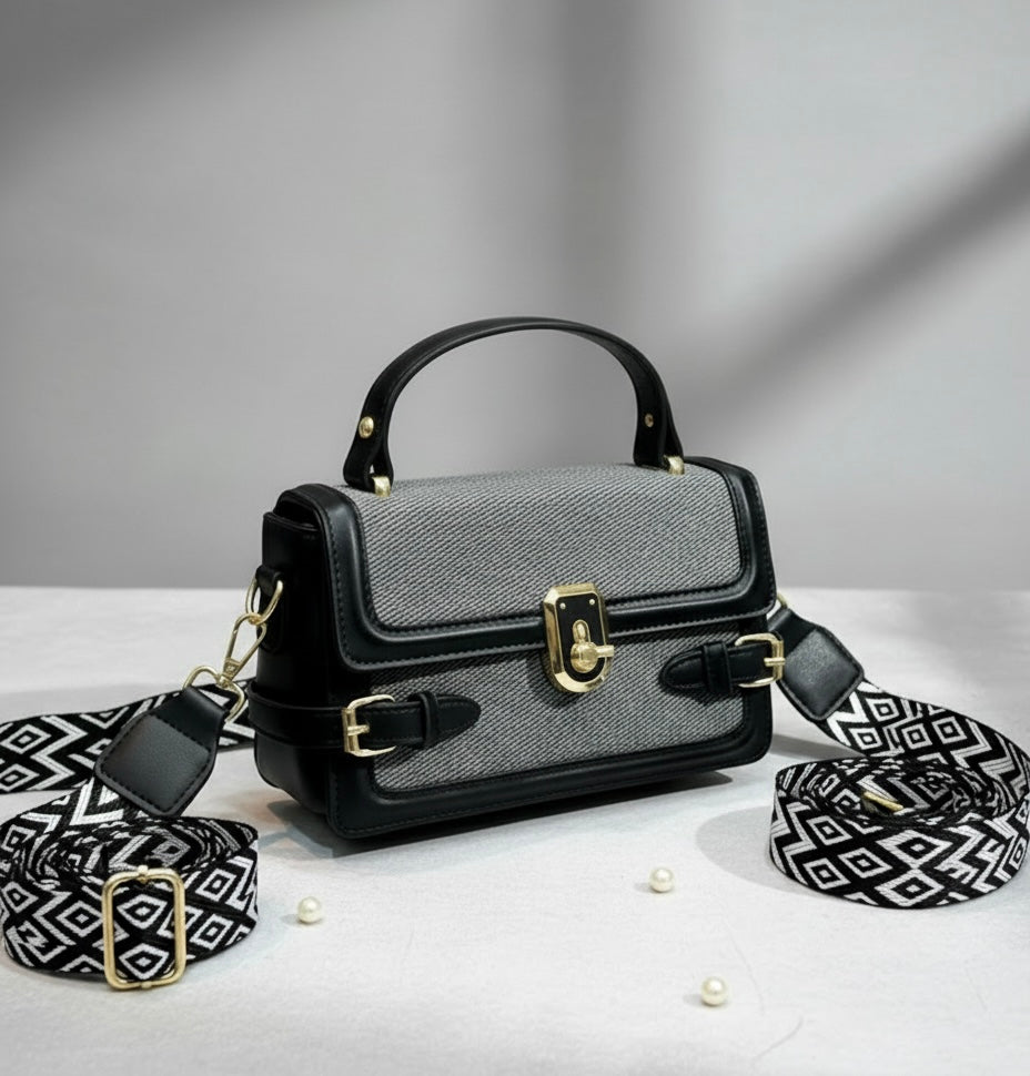 The Canvas and Leather Crossbody Satchel – Black & Beige blends timeless elegance with everyday practicality. Crafted from durable canvas and premium PU leather, this women’s crossbody bag is perfect for casual outings or sophisticated events.