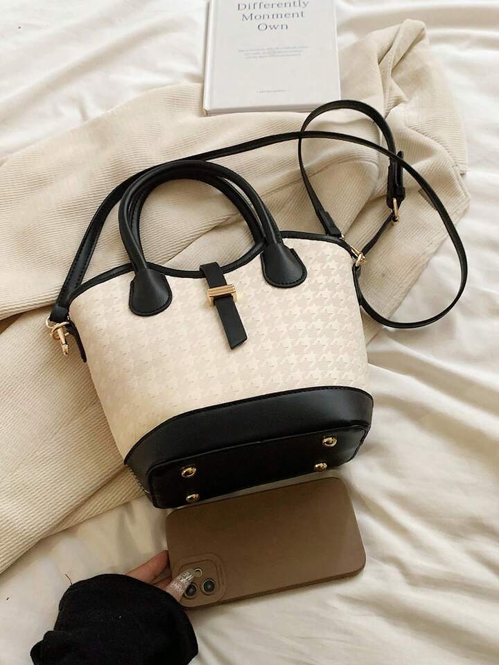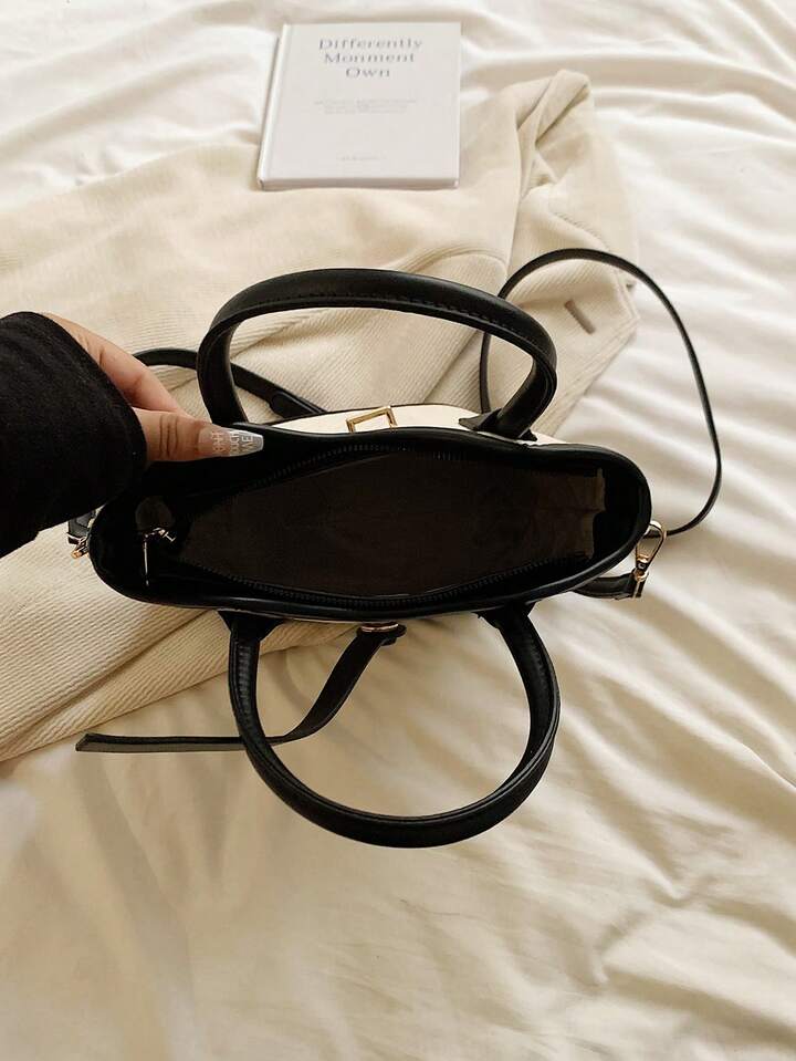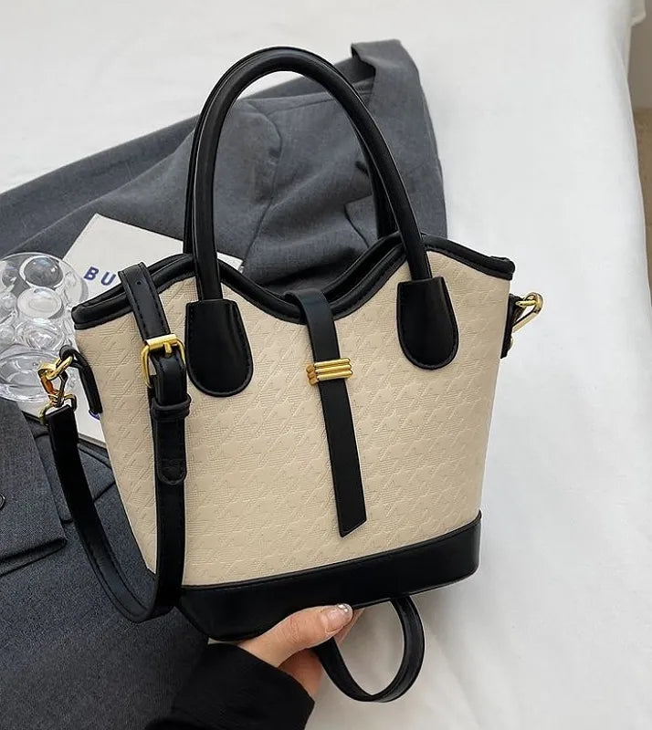 Canvas and Leather Crossbody Satchel – Black & Beige The Canvas and Leather Crossbody Satchel – Black & Beige blends...